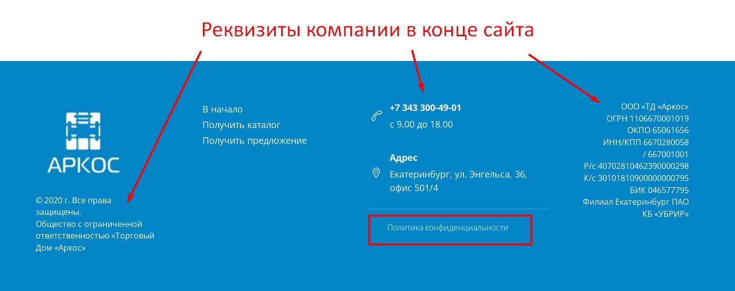 Здесь размещаются реквизиты компании и аккуратность оформления тоже влияет на доверие.